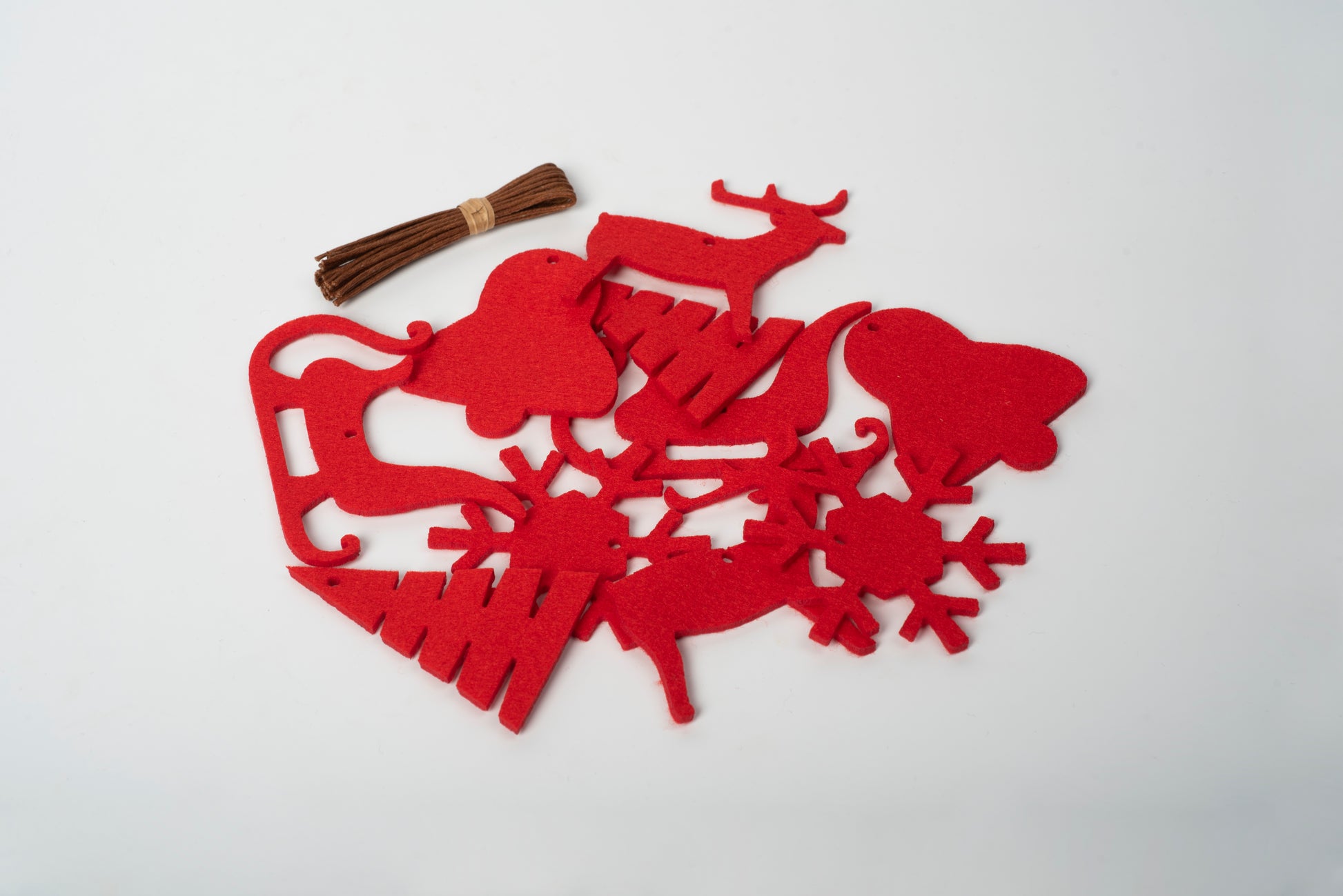 Το σετ περιέχει 10 στολίδια από τσόχα σε 5 δημοφιλή χριστουγεννιάτικα μοτίβα. Τα στολίδια διατίθενται σε τρία διαφορετικά μεγέθη. Το σετ περιλαμβάνει και κορδόνια για το κρέμασμα των διακοσμητικών.