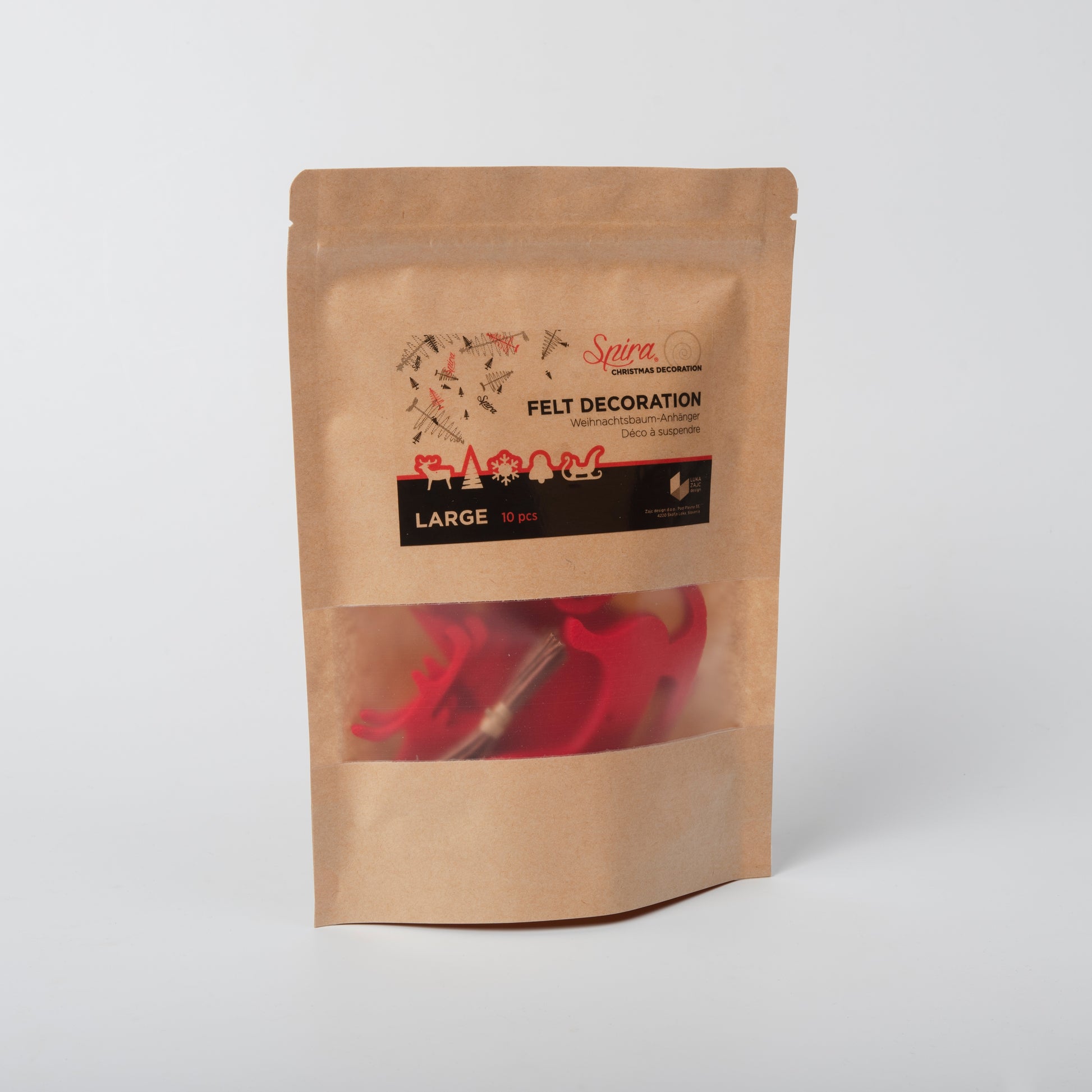 Ένα σετ από 10 πρωτοχρονιάτικα διακοσμητικά από κόκκινη τσόχα θα προσφέρει την τέλεια εορταστική ατμόσφαιρα. Με αυτά μπορείτε να στολίσετε το χριστουγεννιάτικο δέντρο Σπείρα ή να αφήσετε ελεύθερη τη φαντασία σας και να στολίσετε ό,τι θέλετε.